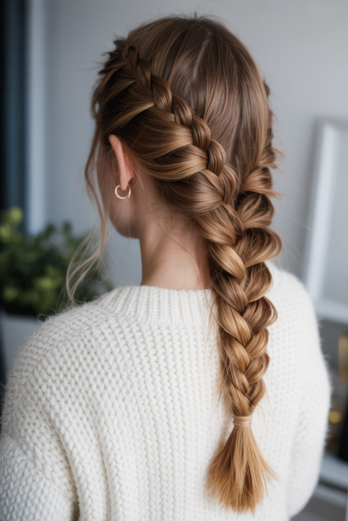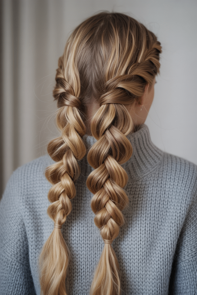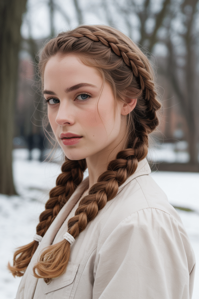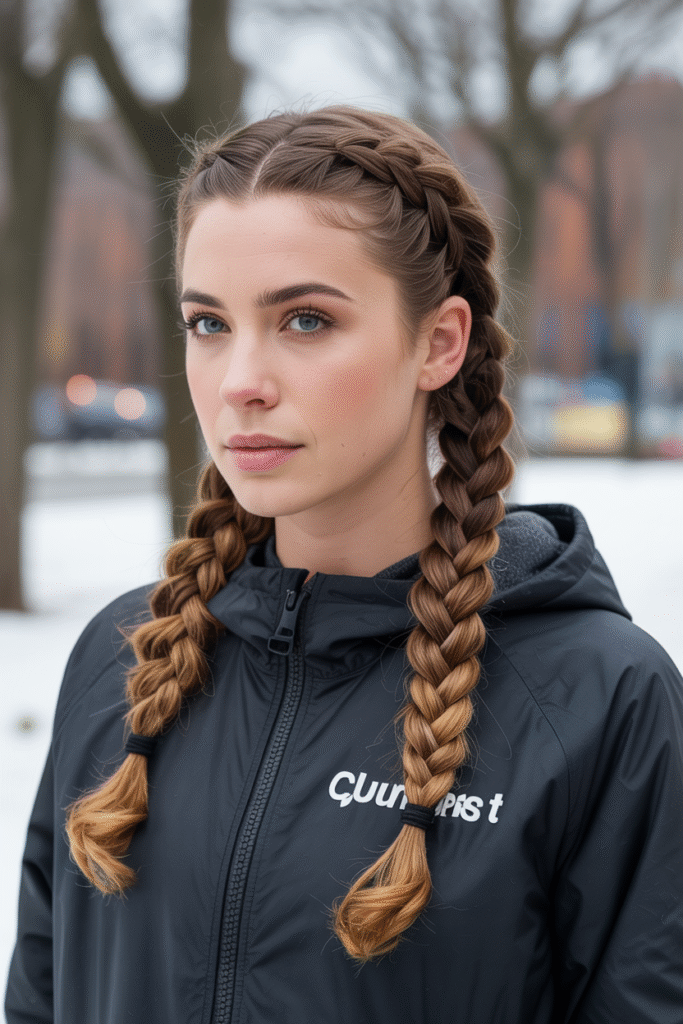 Okay, before you roll your eyes thinking “basic,” hear me out. Double French braids are the ultimate winter hair protector. They keep your ends tucked away from harsh winds and prevent breakage like nobody’s business.