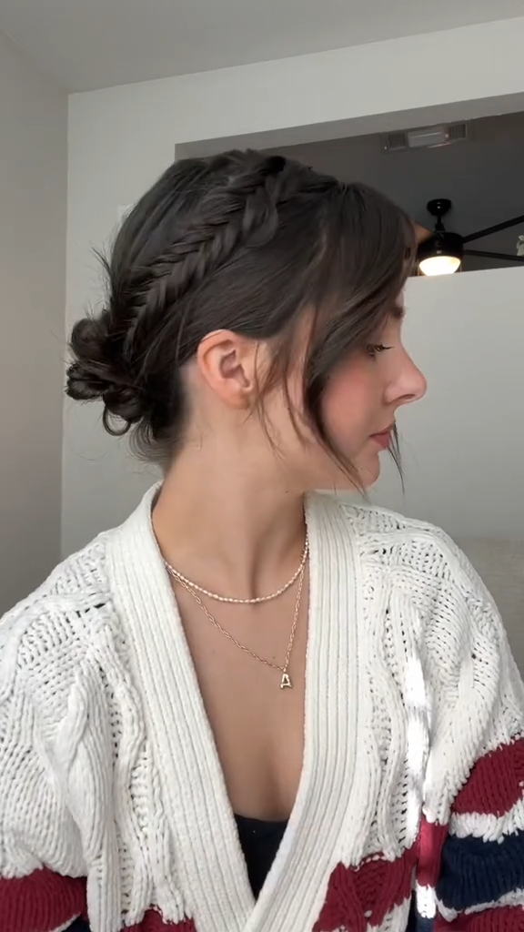 Ever wondered why this style looks so expensive? It’s because it creates the illusion of a hair accessory without actually wearing one. Start at one ear, braid along your hairline, and pin behind the opposite ear. This works on hair as short as a bob, and I’m not exaggerating.