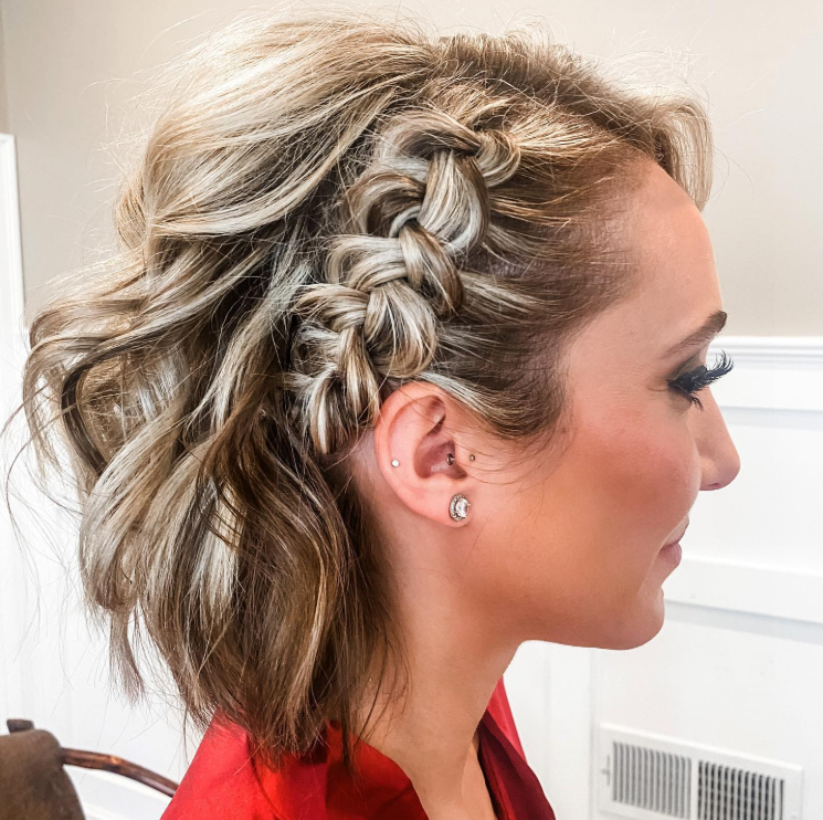 Take the top section of your hair, create a loose braid, and pin it back. This is perfect for when you want braids but also want your hair down. Plus, it works on practically any short haircut.