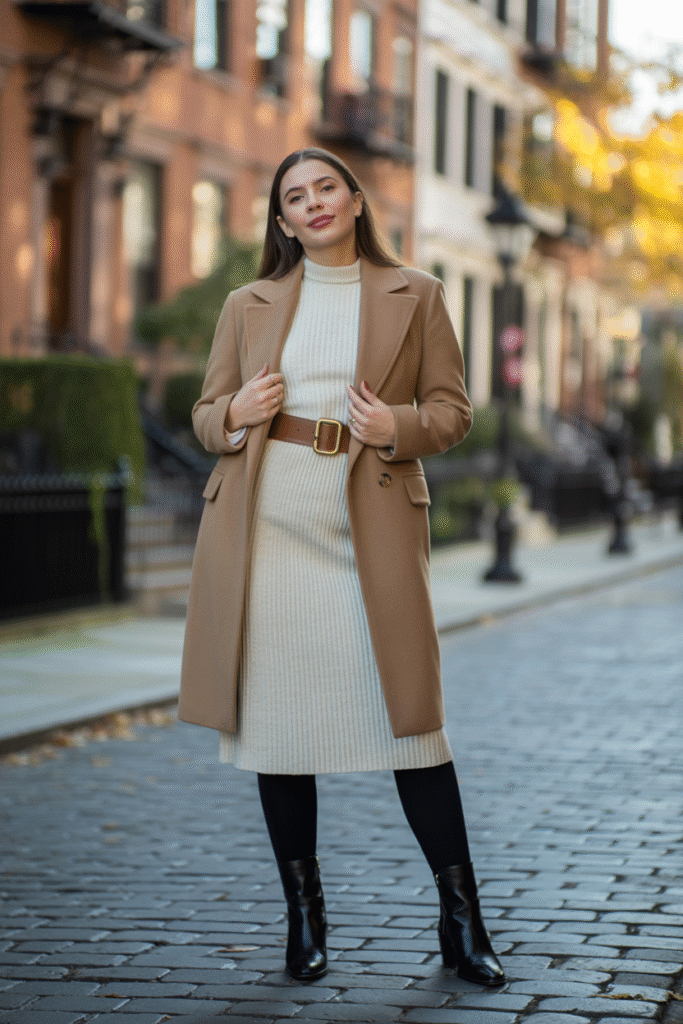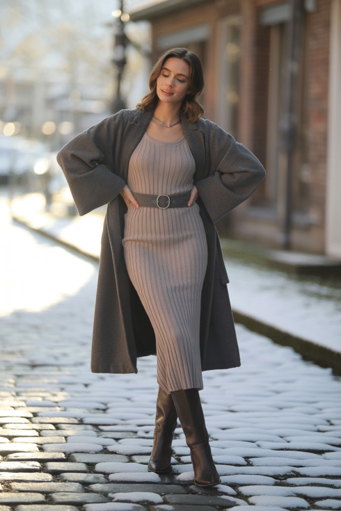 - Finish with considered details: A belted waist, knee-high boots, and a textured scarf elevate even a minimalist base.
