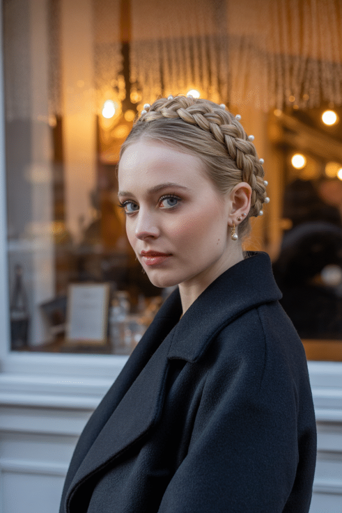 You want instant romance that works with a scarf and statement earrings. The crown braid never fails.