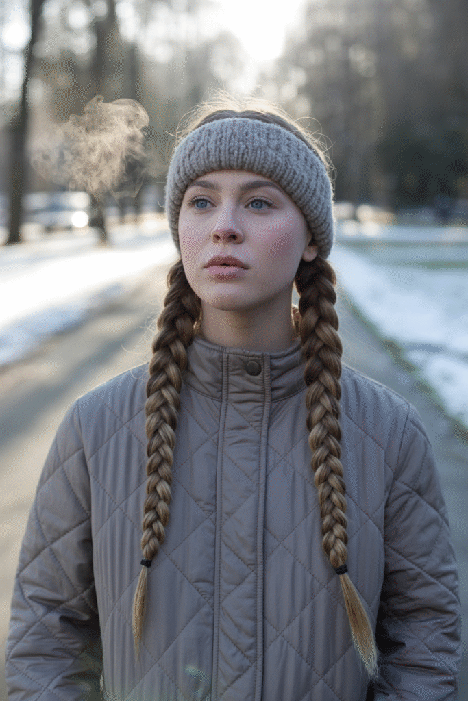 - Dutch Twin Braids: Pair with a knit headband and a quilted jacket. You keep ears warm and avoid crushing the braid base.