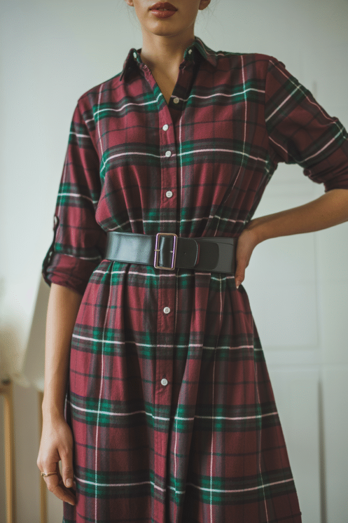 - The base: Look for a plaid shirt dress (often around $30–$35).