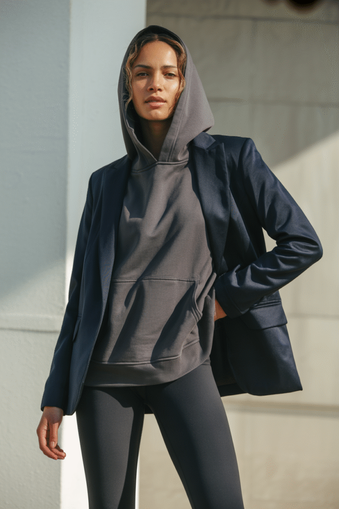 Athleisure doesn’t mean sloppy when you add one polished layer.