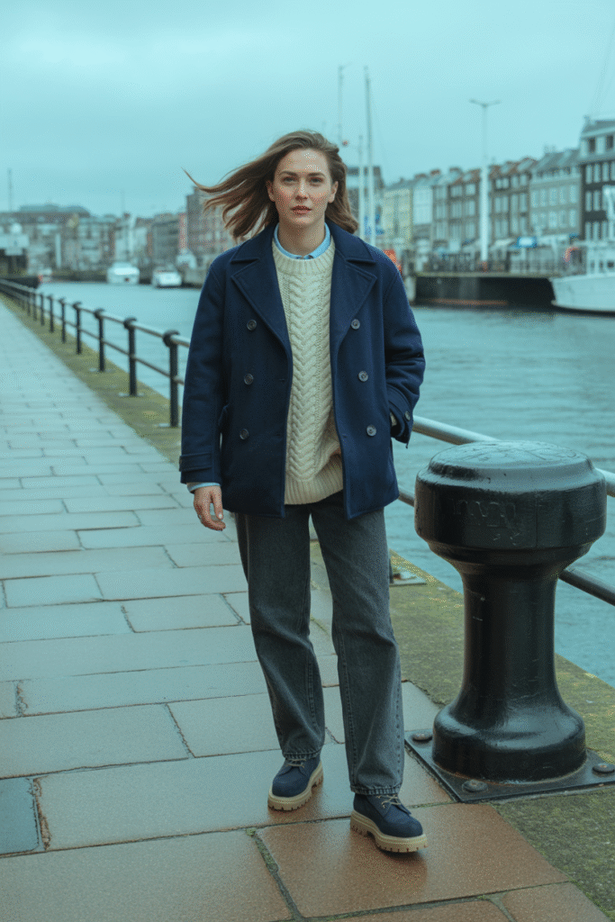 3) The Navy Peacoat & Fisherman Knit (Gender-Neutral Classic)